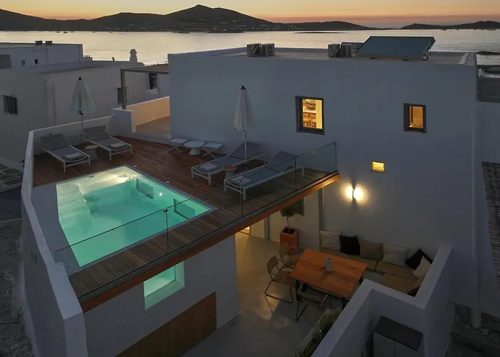 Offering a terrace overlooking the city, Ekos Unique Cycladic Home - Private Pool Naousa is located only a 5-minute walk from the Logovarda Monastery.